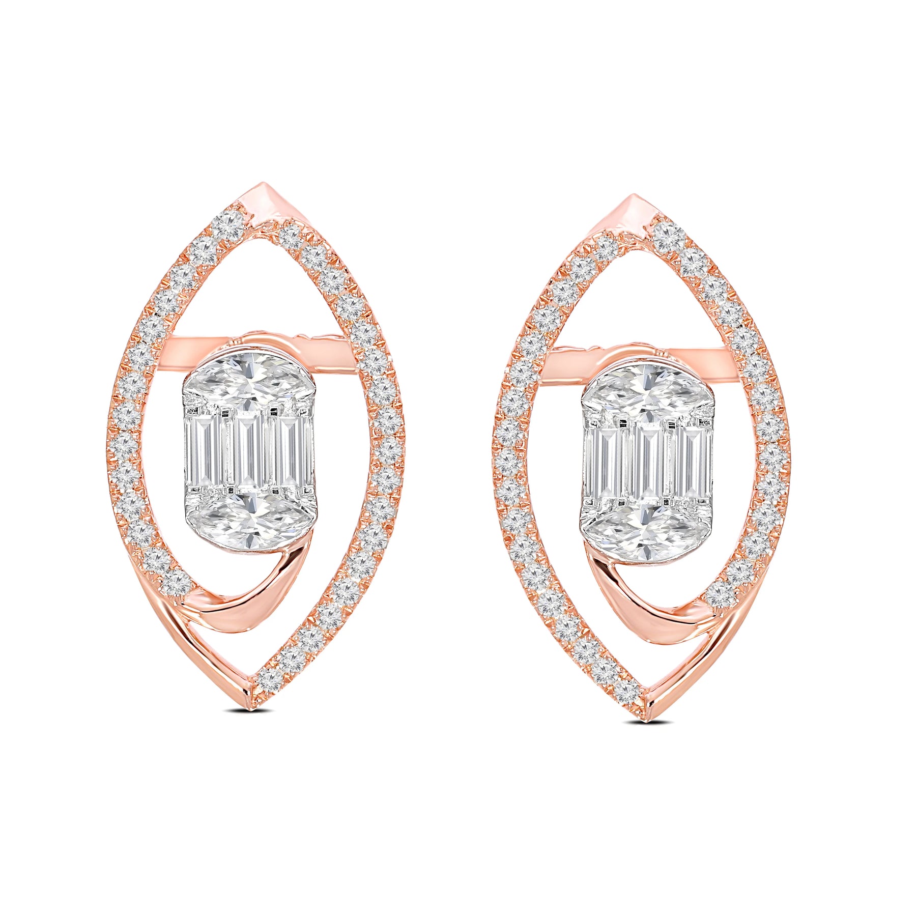 These sleek earrings feature clean lines and radiant diamonds, embodying contemporary elegance.